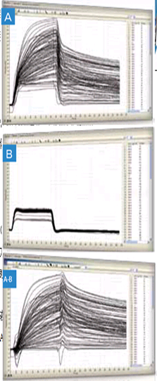 建立的方法可以轻易的根据解离常数(kd)将反应分级。该方法允许在无人为看护的状况下,检测192个样本(图A)。在细胞裂解液与芯片表面间无非特异性结合被检测到(图B)。该方法可以被用作克隆的筛选﹑生物标记物的研发﹑疫苗的筛选制备﹑生物制造研究等生物学相关领域。